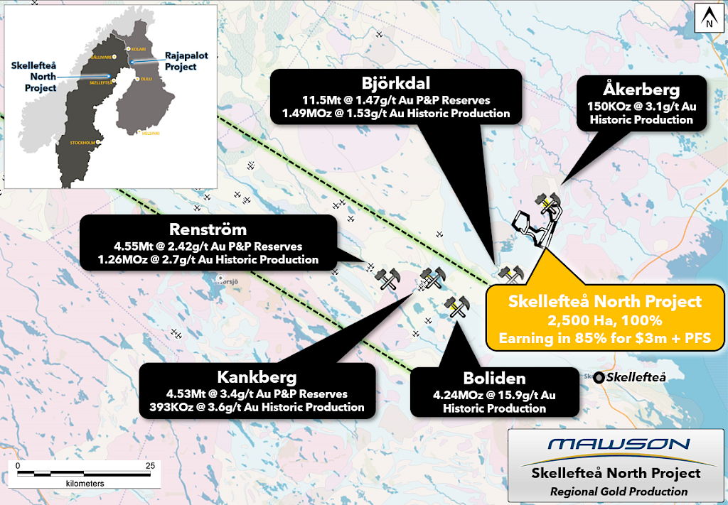 Swedish mining giant Boliden has dominated production in the district for nearly a century and has established processing facilities at the site of the historical Boliden gold mine (historical production of 4 Moz at 15.1 g/t Au) located ~22 km to the southwest and smelting facilities in Skelleftea.